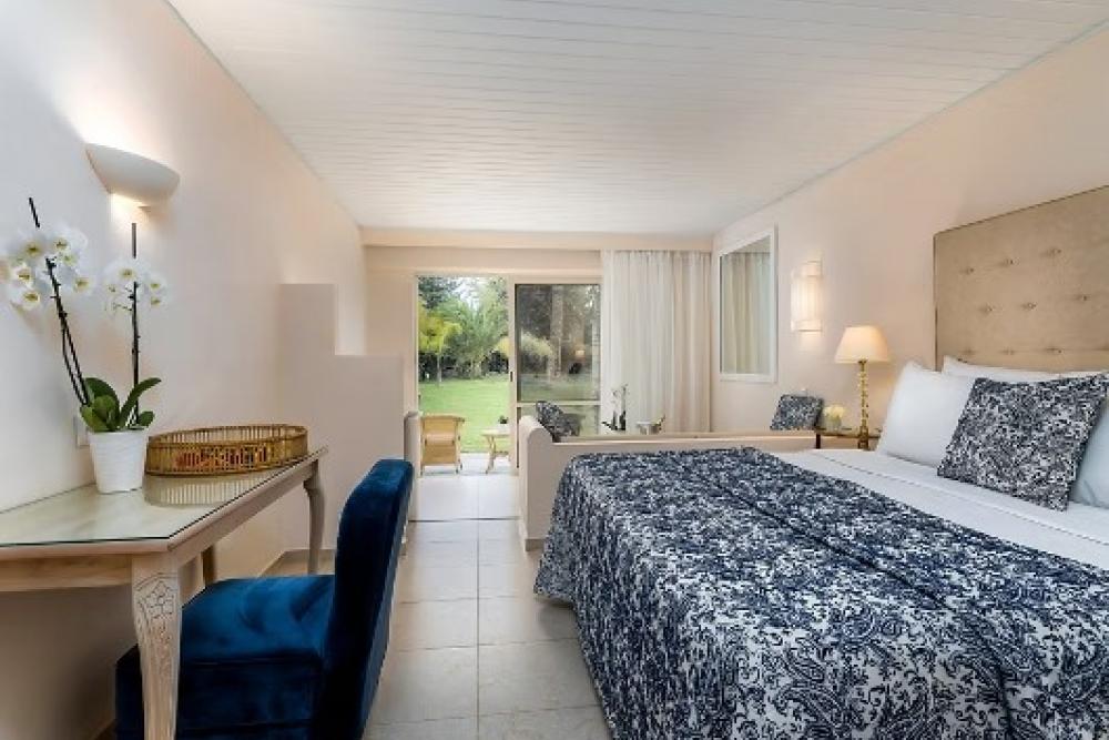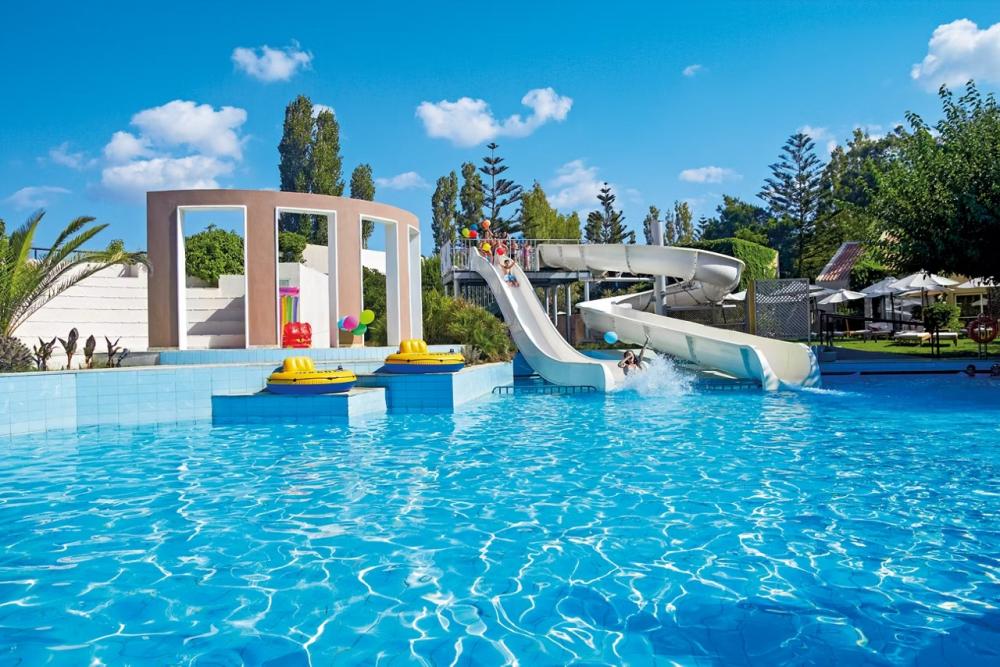 Days unfold effortlessly here. Stretch out by the large central outdoor pool, framed by mature gardens, or let little ones splash happily in their own children’s pool complete with waterslides. When the sun begins to dip, enjoy unhurried evenings dining across the resort’s excellent choice of restaurants and bars — or head into nearby Rethymnon, with its charming Venetian harbour and lively café culture, just a short drive away.