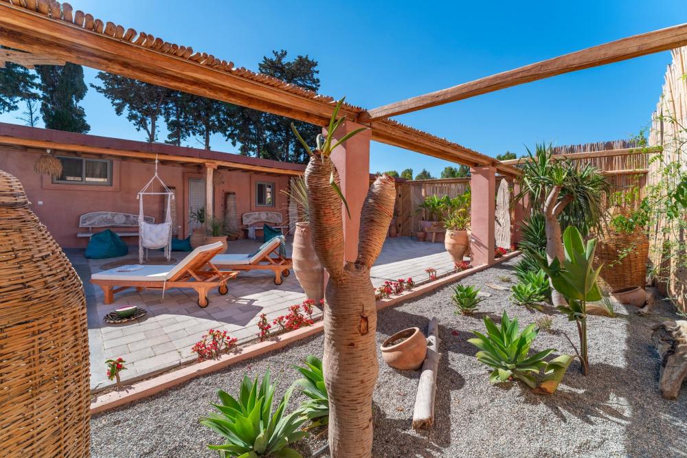 - Serene outdoor spaces with a bohemian design aesthetic